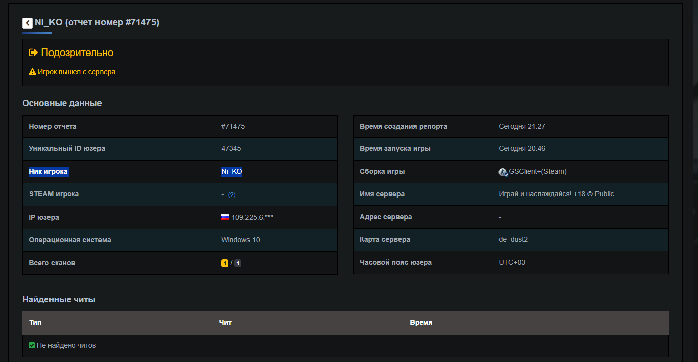 Игрок: Никита Дуликов