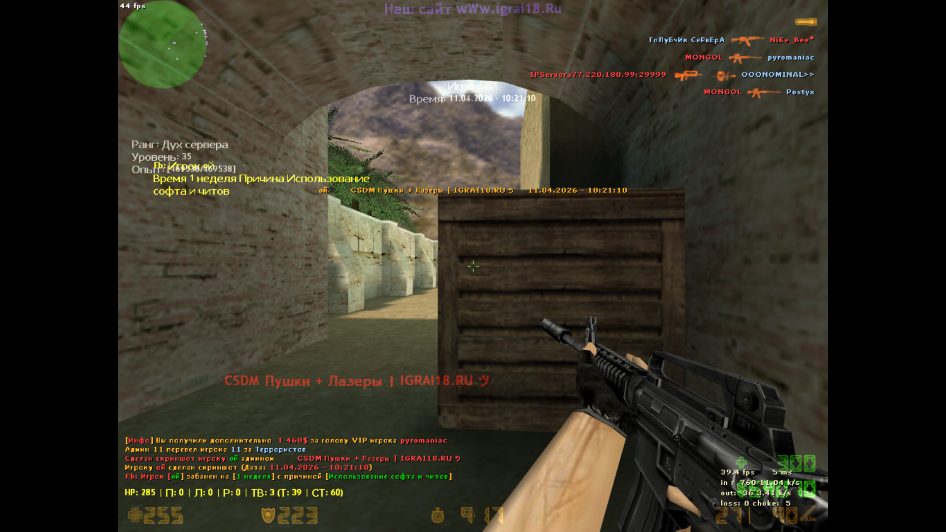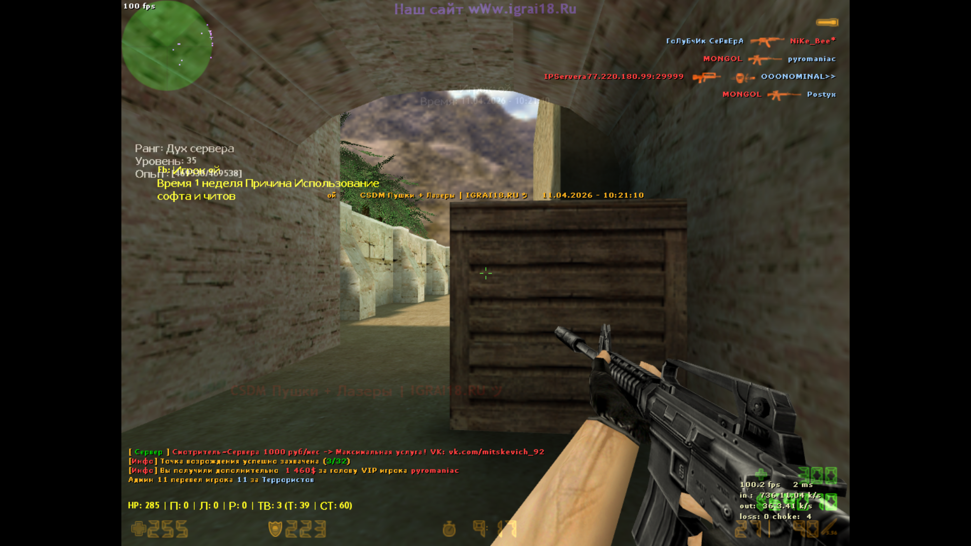 Сервер: CSDM Пушки + Лазеры | IGRAI18.RU
